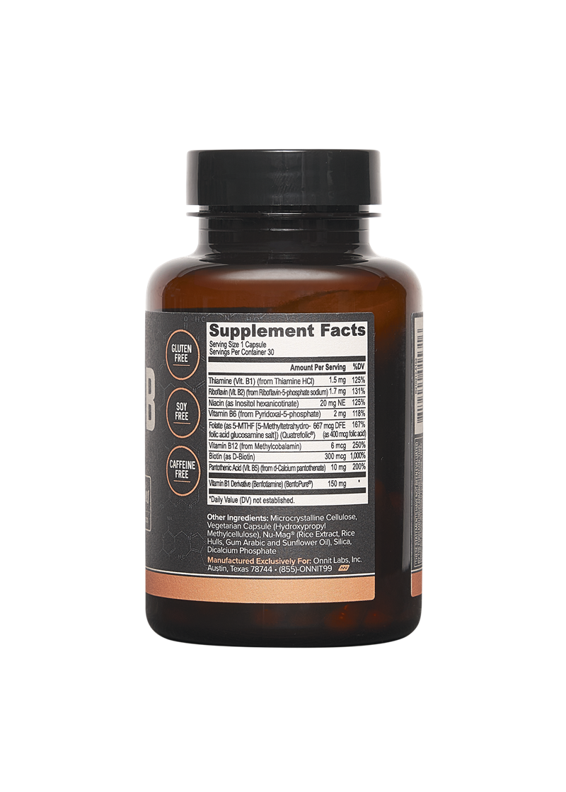 Not everyone handles the absorption of B vitamins well. There is a good portion of people, for instance, who struggle to uptake the essential B vitamin folate, or folic acid. For them, supplementation with a methylated version, like 5-methyltetrahydrofolate, can make a huge difference in overall mental balance. Generally speaking, the methylated form of Vitamin B, like our methylated form of B12 methylcobalamin, is more easily absorbed by the body. Our standout ingredient, Benfotiamine, has clinical research indicating that the bioavailability of thiamine in blood plasma is reported to be approximately 3.5 times greater after a dose of Benfotiamine than after a dose of Thiamine. That is a huge difference in how effective your B vitamin supplement will be, so pay attention to your body and make sure you supplement with B vitamins that are packaged in a way that’s best for your system.
