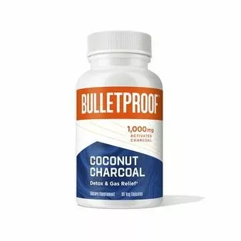 The Bulletproof Coconut Charcoal Capsule is a natural and highly absorbent material with millions of tiny pores that capture, bind, and remove up to 100 times its weight in toxins. The porous surface has a negative electric charge that attracts positively charged toxins and gas, so they can be easily carried out of the body.