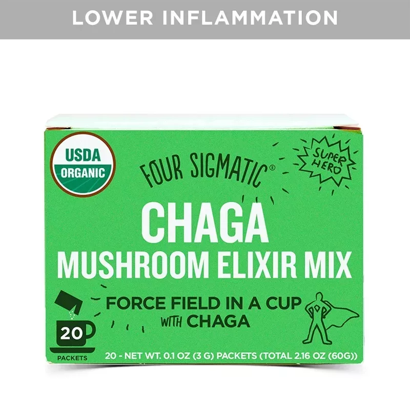 Four sigmatic mushroom elixir mix with chaga contains a blend of powerful, natural ingredients, including: