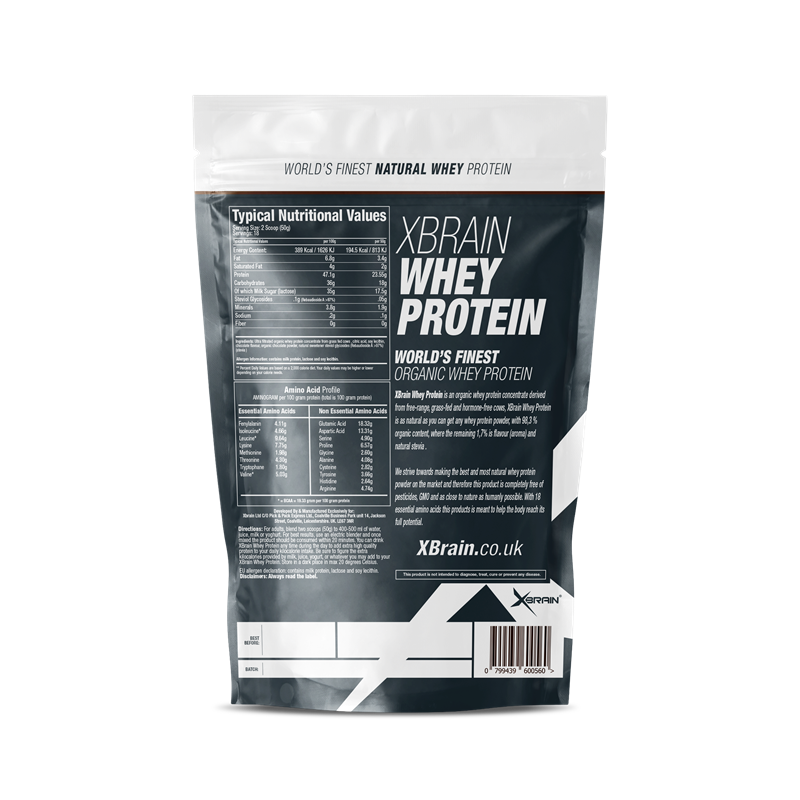 XBrain® Whey Protein concentrate comes from Grass-fed whey which is not exposed to extreme temperatures or changes in pH. This ensures that the proteins in our product remain in tact which makes our whey protein concentrate far superior to other products. The structure of a protein is all important in terms of its function. Proteins are very sensitive to heat and changes in pH. This causes them to take on an abnormal conformation rending them useless biologically. As such, XBrain® Whey Protein Chocolate concentrate will support all your essential protein needs with high bioavailability.